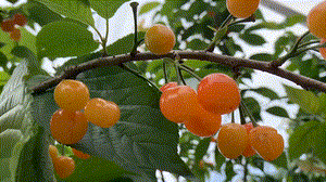 顆顆櫻桃半掩在綠葉之下