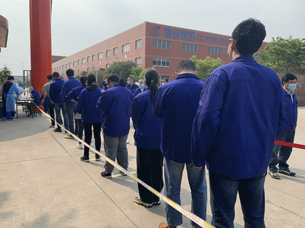 根據(jù)上級文件精神指示,4月19日下午,常州液壓成套設(shè)備廠有限公司配合開展全體員工及鄰廠單位全員核酸檢測,為安全生產(chǎn)筑牢“防護墻”。