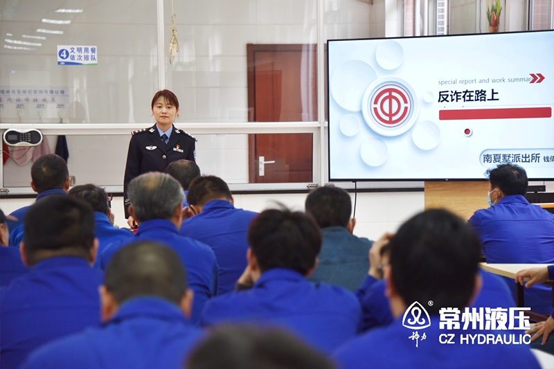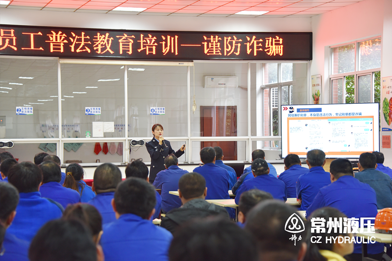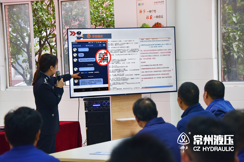 針對(duì)當(dāng)前各類詐騙警情持續(xù)多發(fā)高發(fā)、詐騙手法變化多樣的情況,為進(jìn)一步增強(qiáng)企業(yè)員工安全風(fēng)險(xiǎn)防范意識(shí),提高對(duì)詐騙信息的甄別、抵御能力,常州液壓成套設(shè)備廠有限公司舉辦謹(jǐn)防詐騙宣教活動(dòng),邀請(qǐng)了常州市公安局武進(jìn)分局錢警官擔(dān)任主講,由常州液壓總經(jīng)辦朱主任主持,全體職工參加了此次活動(dòng)。
