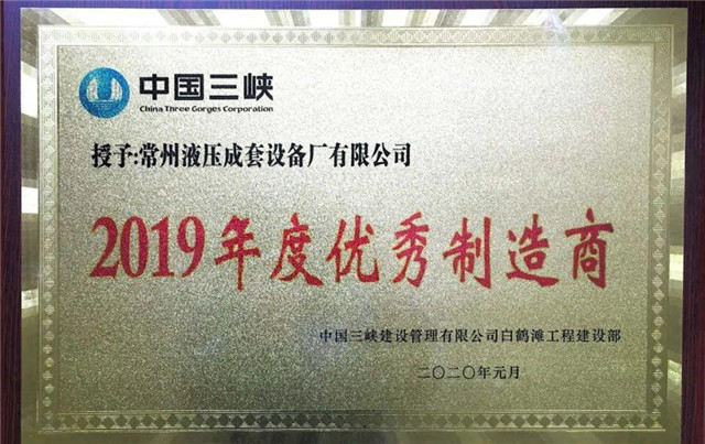熱烈祝賀我公司在白鶴灘水電站工程中被授予 “2019年度優(yōu)秀制造商”的光榮稱號(hào)